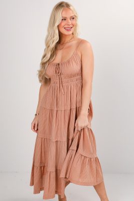 FINAL SALE – Rooted In Love Taupe Tiered Maxi Dress