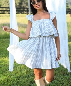 FINAL SALE – Full Of Love White Striped Ruffle Mini Dress